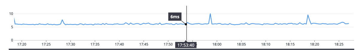 このサービスは普段のレイテンシが20ms以下程度なのですが、問題発生時は80ms以上まで上昇していました。 これを解決するために以下の調査を行いました。