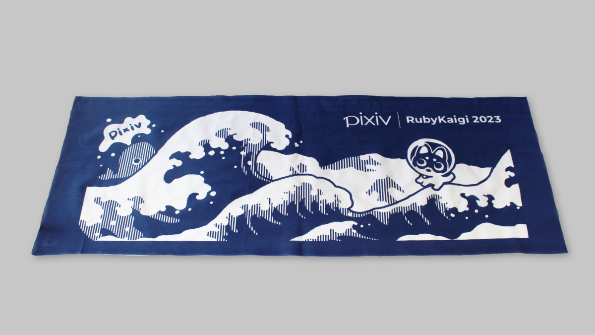 サイレント企画でしたが、カンファレンス会場でピクシブ社員とお話ししていただいた方には、特製手拭いをプレゼントしていました。