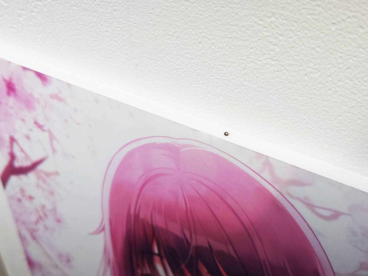 展示中に作品が落下するようなことは絶対ないように、固定が甘い部分は、さらにピンを打ってしっかり固定。